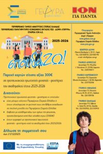 9626 ΦΟΙΤΗΤΙΚΟ ΕΠΙΔΟΜΑ 300€ ΓΙΑ 6η χρονιά ΜΕΣΩ ΤΗΣ ΔΡΑΣΗΣ «σπουδά…ΖΩ!»2025-2026 ΤΗΣ ΠΕΡΙΦΕΡΕΙΑΣ ΣΤΕΡΕΑΣ ΕΛΛΑΔΑΣ, ΜΕ ΧΟΡΗΓΙΑ ΤΗΣ ΙΟΝ Α.Ε. ΒΙΟΜΗΧΑΝΙΑΣ & ΕΜΠΟΡΙΟΥ ΚΑΚΑΟ ΚΑΙ ΣΟΚΟΛΑΤΑΣ – ΠΛΗΡΟΦΟΡΙΑΚΟ ΥΛΙΚΟ