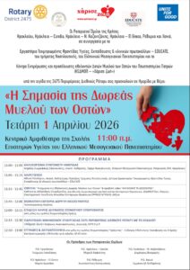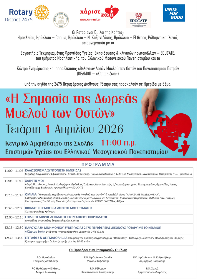 Στο τέλος της εκδήλωσης θα πραγματοποιηθεί εγγραφή εθελοντών δοτών μυελού των οστών.
