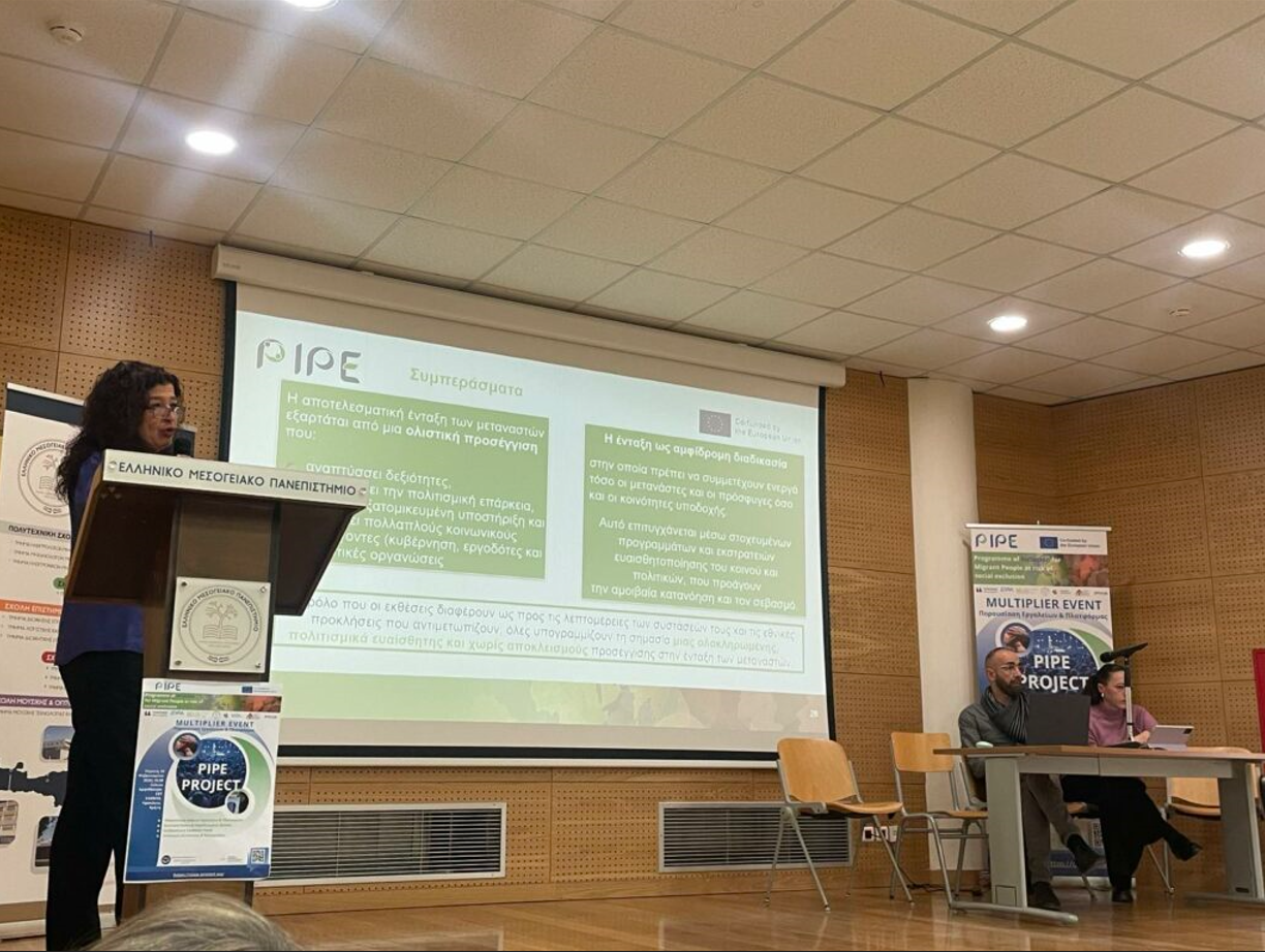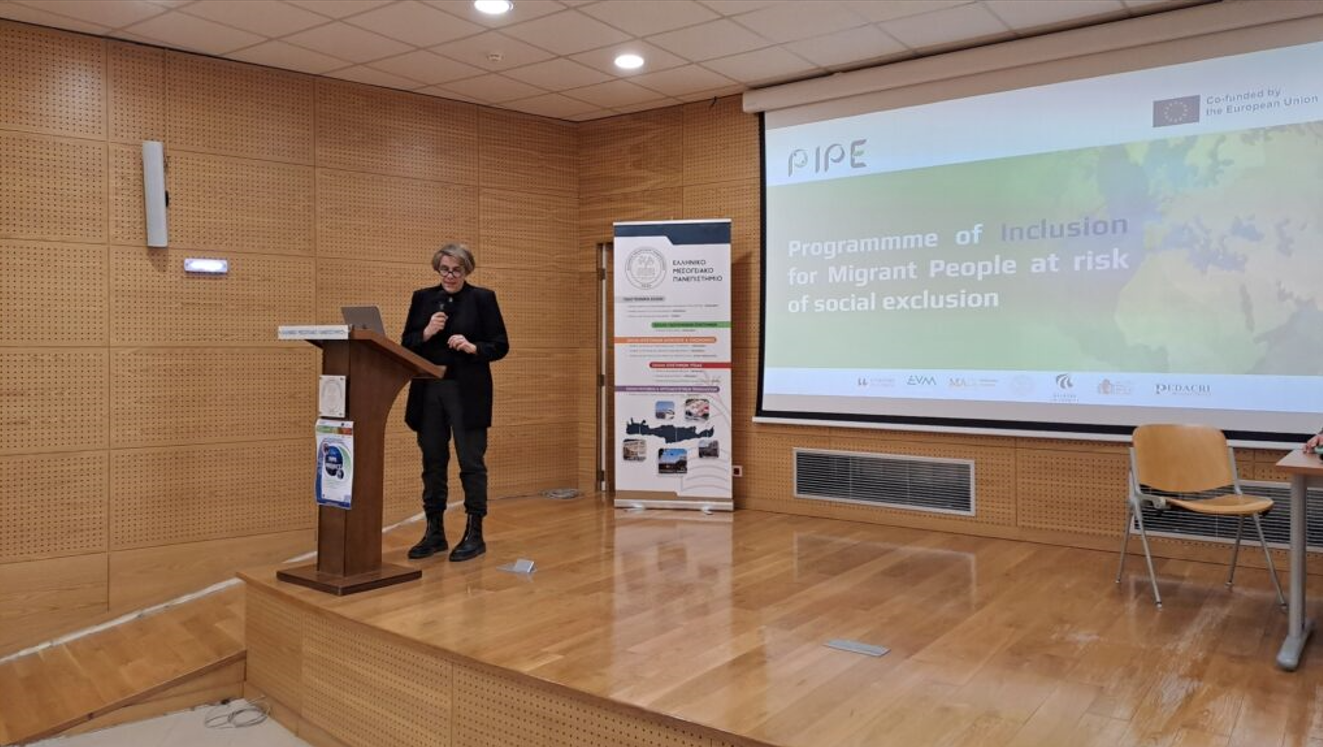 Το Εργαστήριο Εφαρμοσμένης Κοινωνικής Έρευνας και Κοινωνικής Εργασίας (SoRSoW) του Ελληνικού Μεσογειακού Πανεπιστημίου (HMU) διοργάνωσε με επιτυχία μια πολλαπλασιαστική εκδήλωση στο πλαίσιο του έργου PIPE, «Πρόγραμμα Ένταξης για Μετανάστες σε Κίνδυνο Κοινωνικού Αποκλεισμού». Η εκδήλωση πραγματοποιήθηκε στις 19 Φεβρουαρίου 2026 στο Ελληνικό Μεσογειακό Πανεπιστήμιο στο Ηράκλειο.