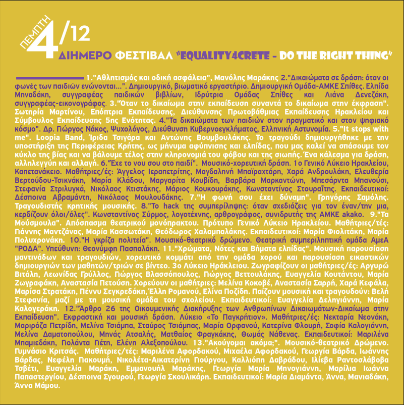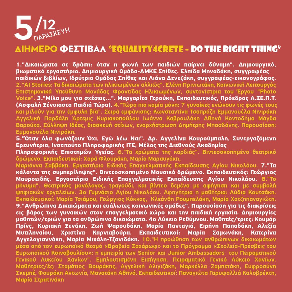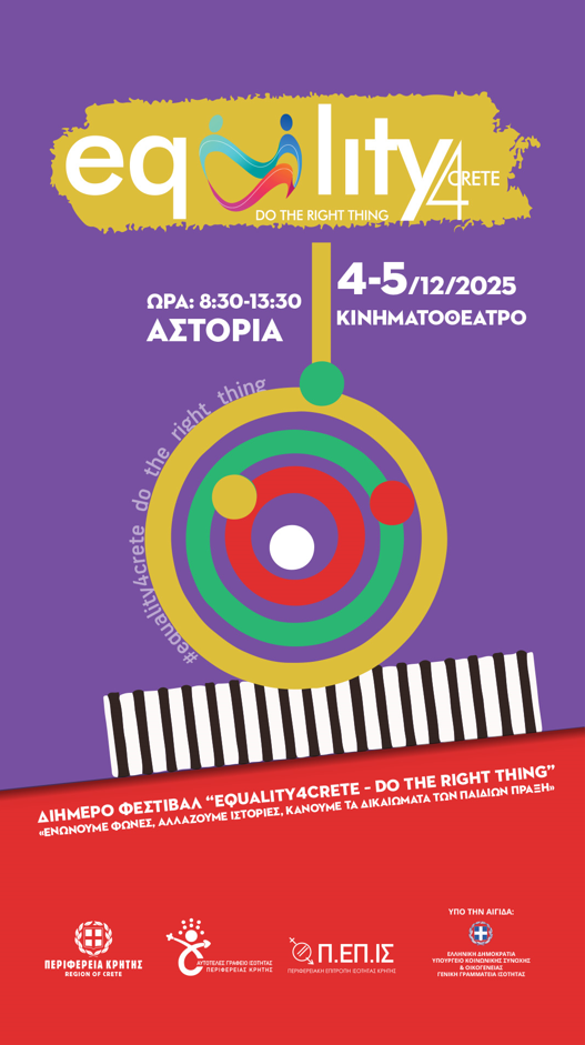 Το Τμήμα Κοινωνικής Εργασίας συμμετέχει και φέτος ενεργά στο φεστιβάλ της Περιφέρειας Κρήτης 16+ Ημέρες Δράσεις για την Πρόληψη και την Αντιμετώπιση της Βίας κατά των Γυναικών και των Κοριτσιών με τίτλο «Equality 4 Crete – Do the rightthing».