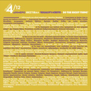 Την Πέμπτη 4 Δεκεμβρίου στο Θέατρο Άστόρια (Πλατεία Ελευθερίας) μαζί με άλλους φορείς και σχολεία, θα παρουσιάσουν τις δράσεις τους με θέμα την έμφυλη βία. Η εκδήλωση θα ξεκινήσει στις 9 και θα διαρκέσει έως τις 2.00 μ.μ. Η είσοδος είναι ελεύθερη για το κοινό.