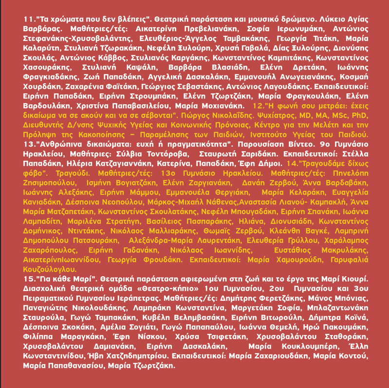 Οι φοιτητές/τριες του Τμήματος στο πλαίσιο της Πρακτικής τους Άσκησης-Εποπτεία ΙΙ , κατά το χειμερινό εξάμηνο 2025-26, συνεργάζονται με το 3ο ΕΠΑΛ Ηρακλείου (Ν.Αλικαρνασσός) και το Εσπερινό Γυμνάσιο Ηρακλείου για την συμμετοχή των μαθητών/τριών στο εν λόγω φεστιβάλ.